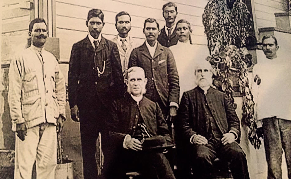 Indian students/converts. On the far left is a man named David Mahabir who grew up on a coconut estate where his mother was indentured, near what is now Point Fortin. Taking the path recommended above, he was baptised by Rev. Morton in 1874 and went on to become an elder in the Presbyterian church and a minor government official.
